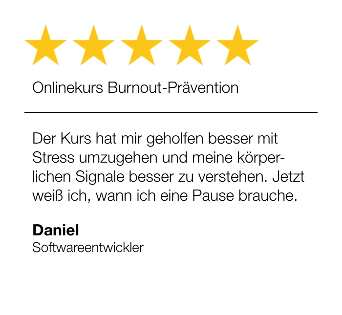 Unser Burnout-Präventionskurs wurde in enger Zusammenarbeit mit führenden Experten aus Arbeitsmedizin, Psychologie und Stressforschung entwickelt. Ihr Wissen und ihre Erfahrung sind in jedes Modul eingeflossen, sodass du fundierte Methoden zur Stressbewältigung, Resilienzstärkung und mentalen Erholung erhältst.✅
